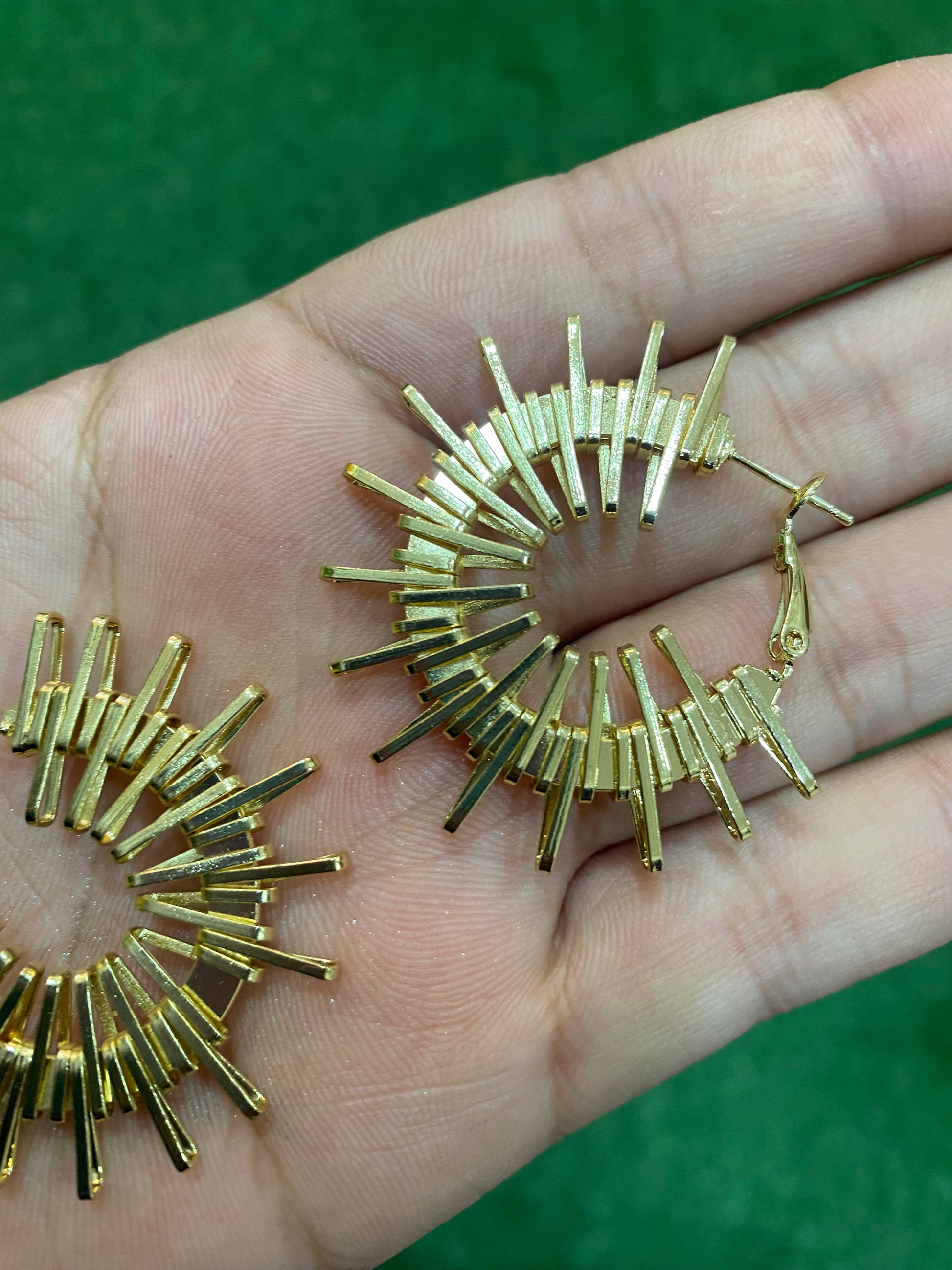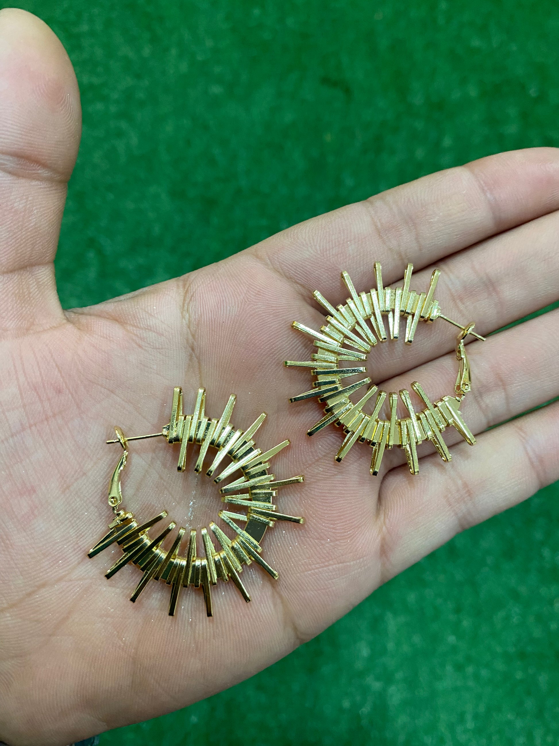 Hechos de cobre de alta calidad, tienen unas puntas doradas que les dan un brillo único y un baño en oro que los hace brillar con elegancia. 🌟✨ Con un diámetro de 4 cm, son lo suficientemente grandes para destacar, pero sutiles para cualquier estilo. ¡Sin duda, los favoritos para realzar tu look! 💖👑