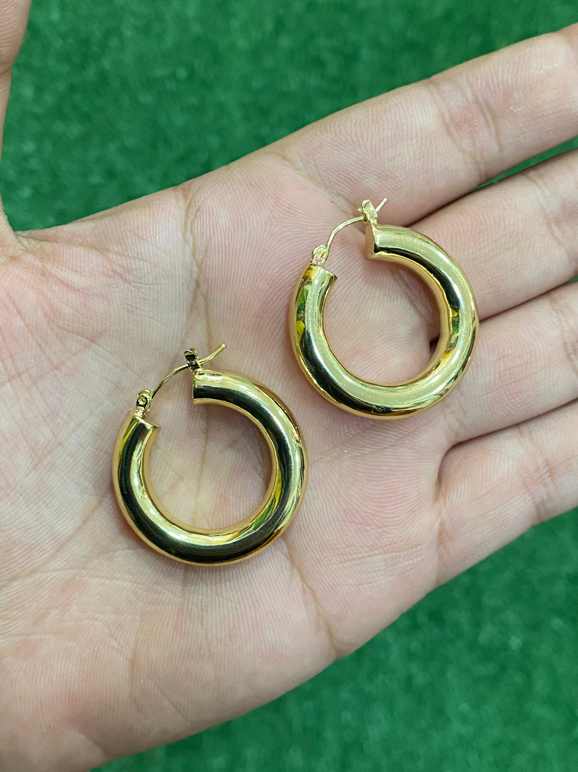 Aros lisos dorados con baño en oro 3 cm diámetro