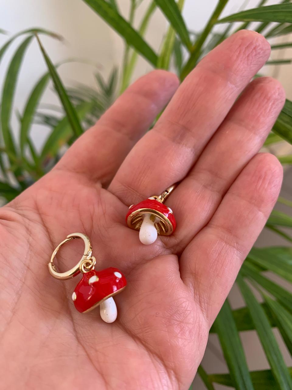 Aritos de hongos esmaltados con baño de oro que transformarán tu estilo. Estos aros artesanales combinan diseño único y calidad . joyería perfecta para cualquier ocasión.