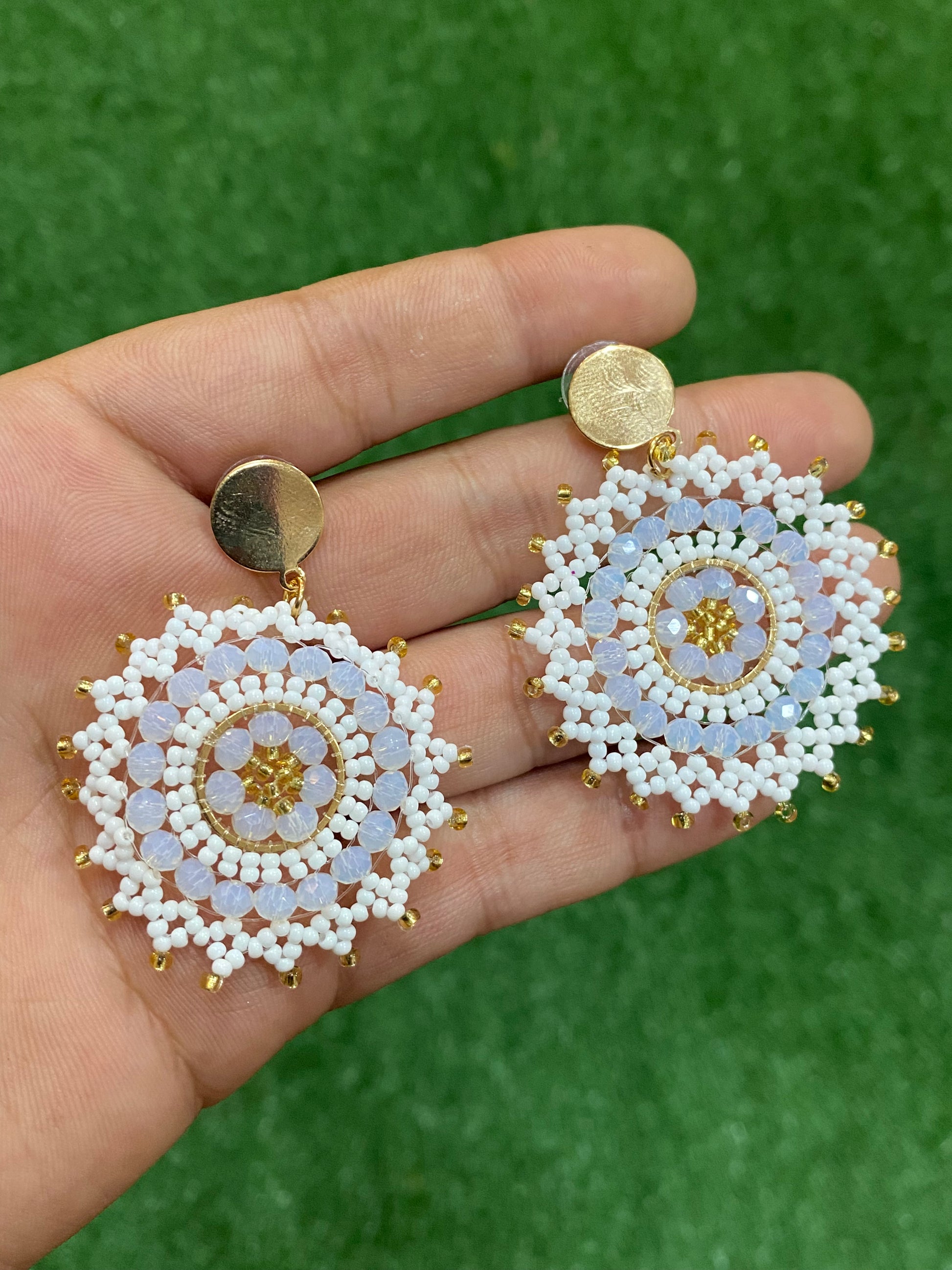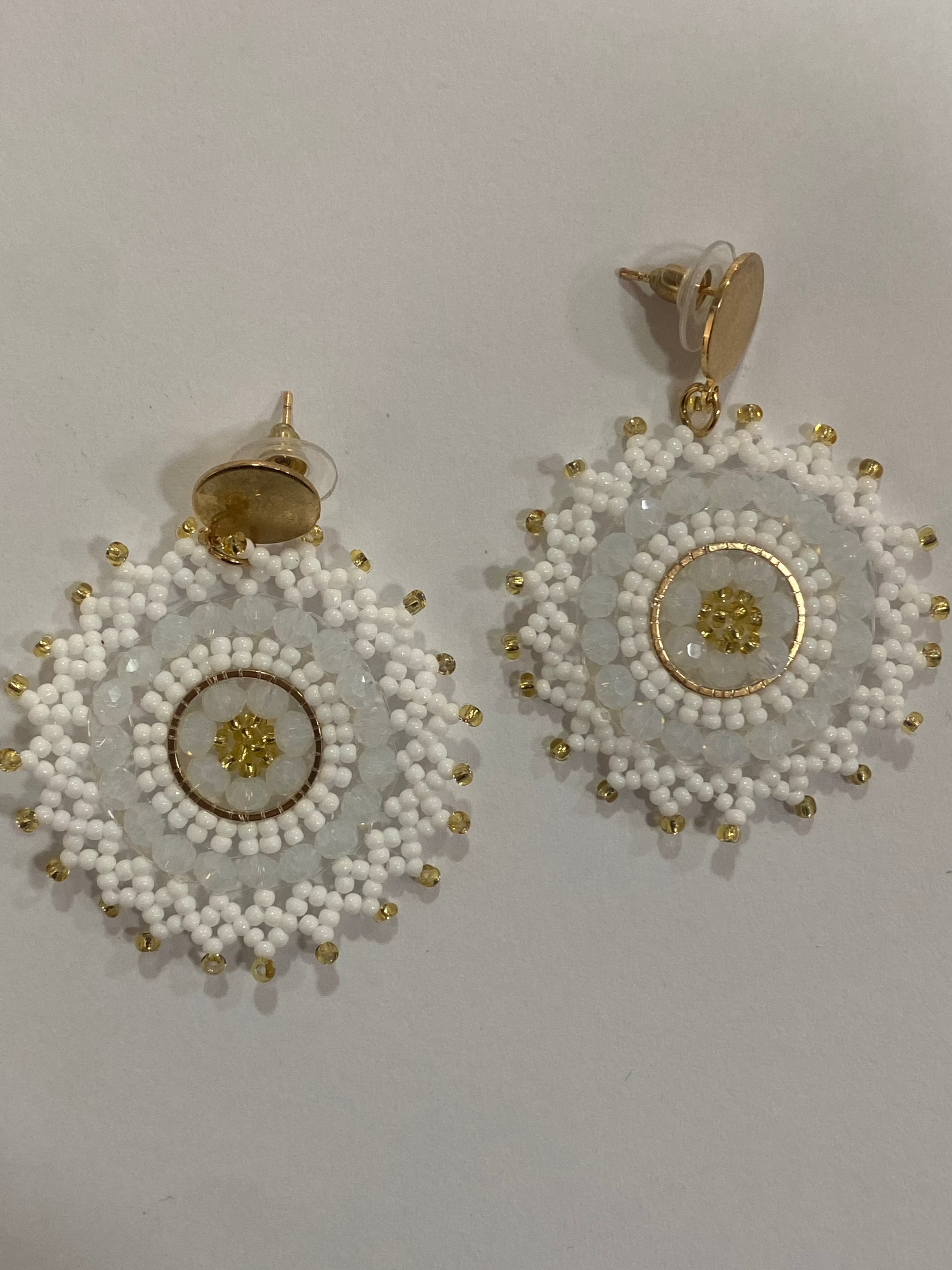 ¡Dale un toque fresco y vibrante a tu look! 🤍 Estos aros redondos de 6 cm de largo están hechos con delicadas mostacillas blancas y una base de acero inoxidable, perfectos para resistir el paso del tiempo sin perder el estilo.