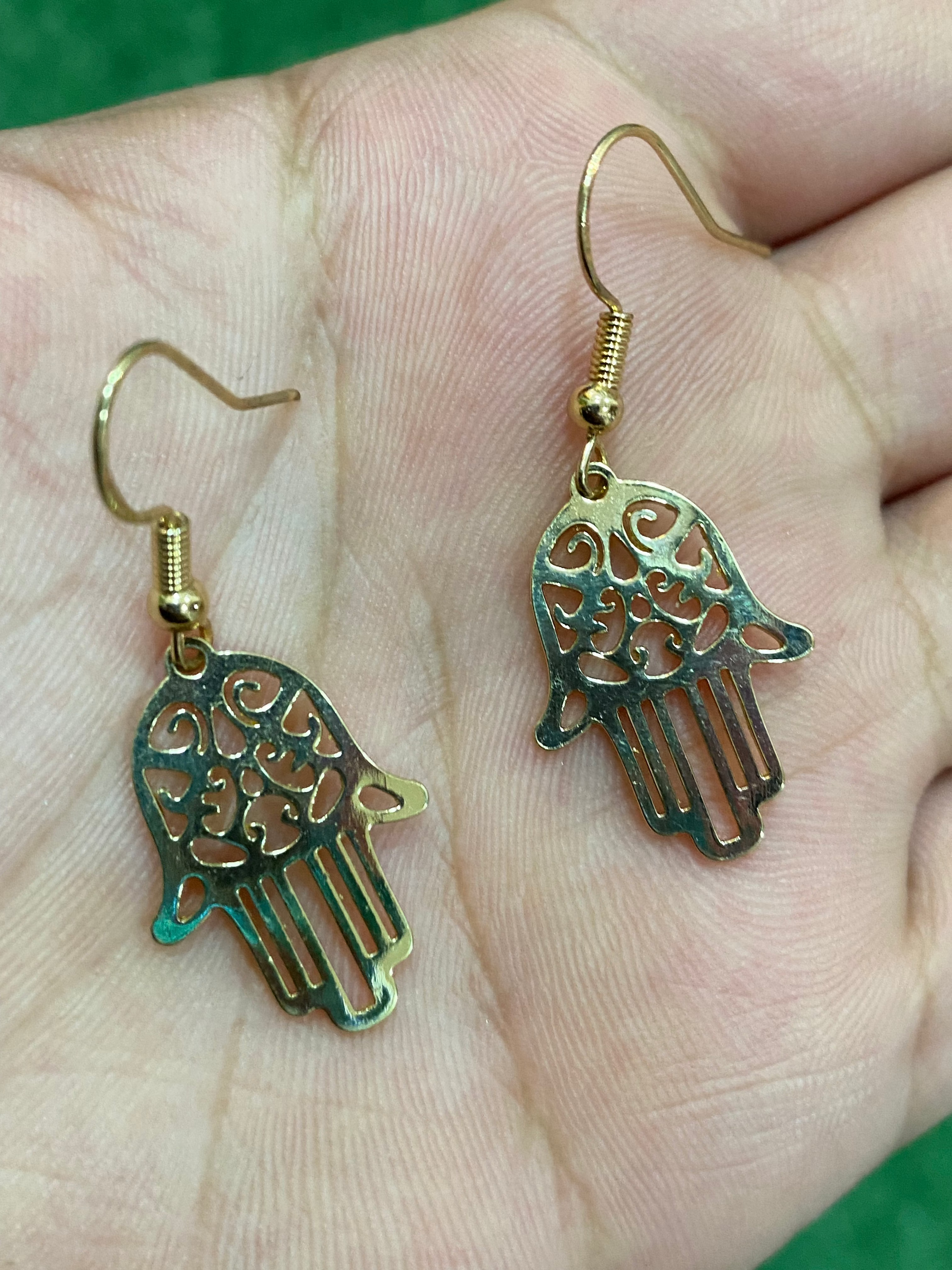 ✨ ¡Dale un toque único a tu look con estos hermosos aros dorados de acero! ✨ Cada uno tiene un diseño increíble de la mano de Fátima ✋, símbolo de protección y buena energía. 🌟