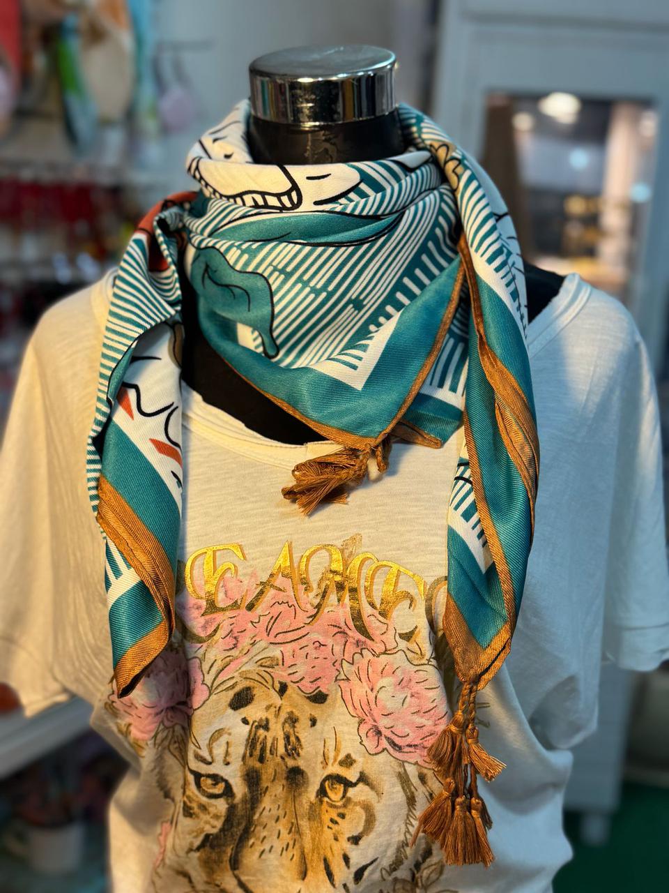 ¡Dale un toque de alegría a tu look con este pañuelo lleno de color y estilo! 💃