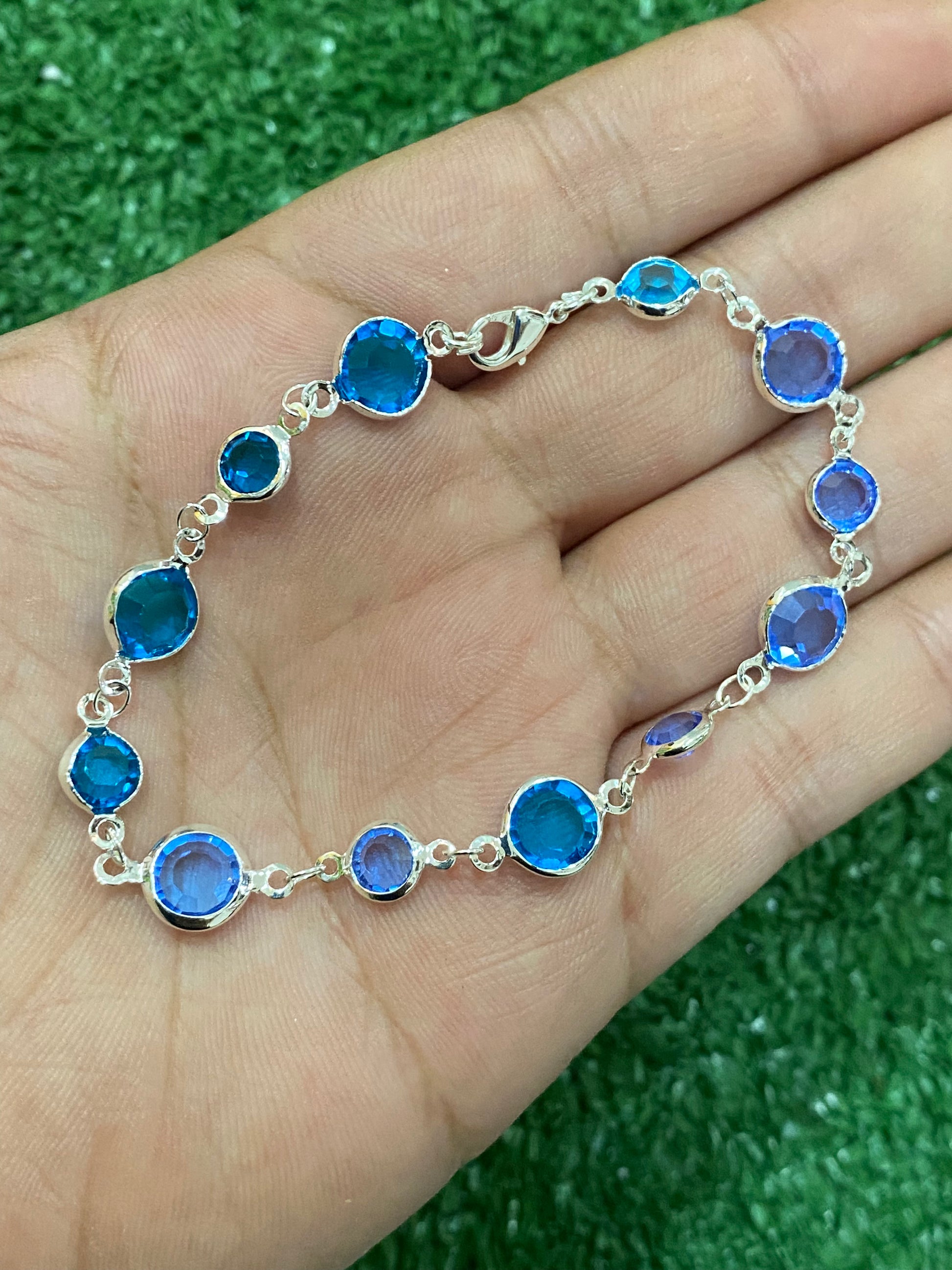 ✨ Pulsera bañada en plata con cristales celestes y azules 💙💫